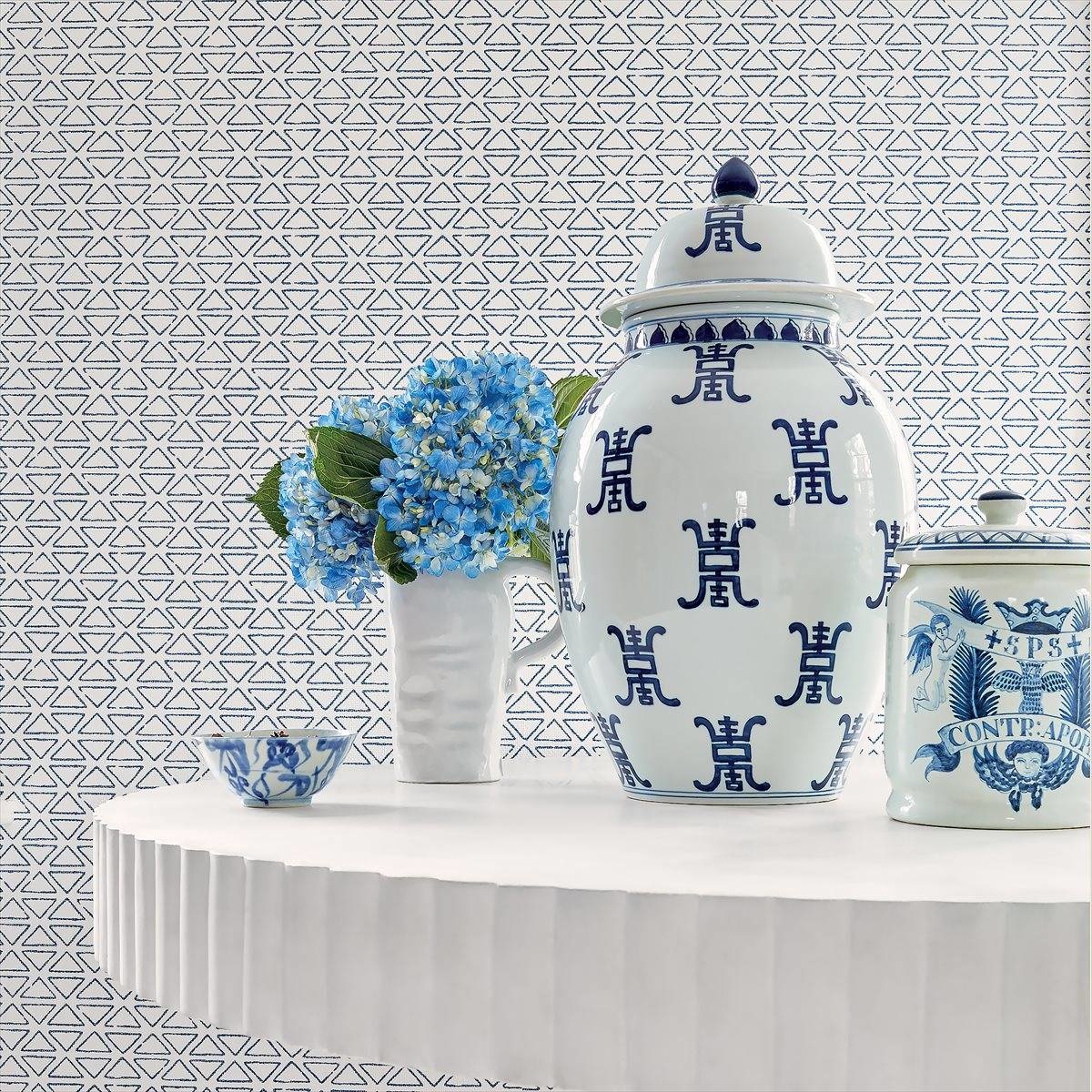 Pyramid Wallpaper from the Anna French Savoy Collection is influenced by the pioneering taste of the 1920s, making Gaya backdrop an extravagant assortment of consolidated strategies of printing, weaving and wallcovering that deftly combine the realistic mathematics of Art Deco with intriguing botanical elements.
