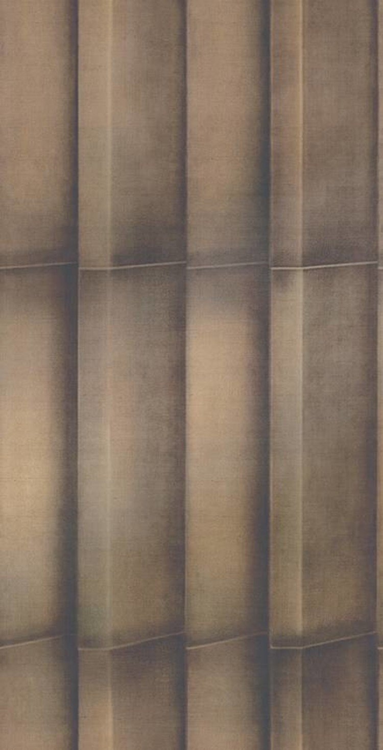 Lohengrin has a pleated effect on a macro scale, which creates a three-dimensional impression in the exquisite colours of platinum and smoky gold.