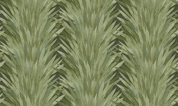 Abanico wallpaper is a vinyl wallpaper with a beautiful fan shape of the composition of pandan leaves and provides a subtle 'collage look'. The pronounced relief of the drawing gives extra depth and contrast.