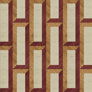 Biseau wallpaper is inspired by a decorative frame with mitered corners. The diagonal inlays stand out against the light, horizontal backdrop. The sisal weave's different directions create an unrivaled 3D effect.