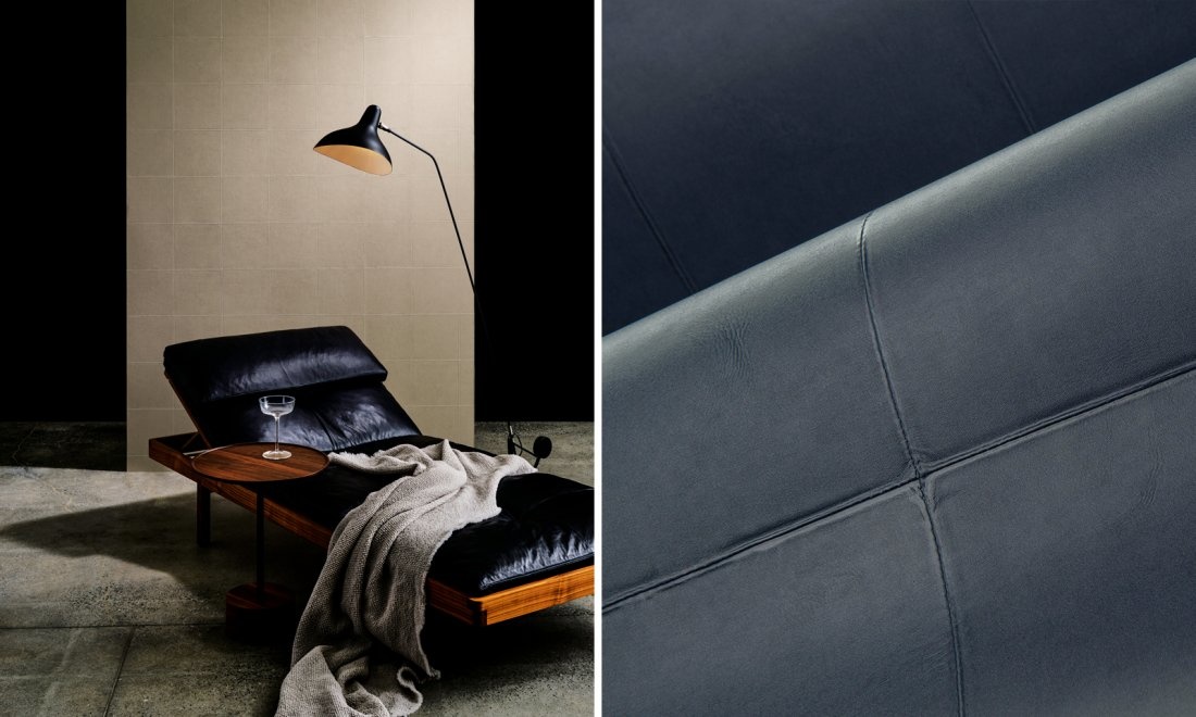 Two designs with the authentic look of soft, luxurious leather, complete with all its natural nuances and irregularities. Hand-stitched leather details add to the realistic appearance of this refined wallpaper.