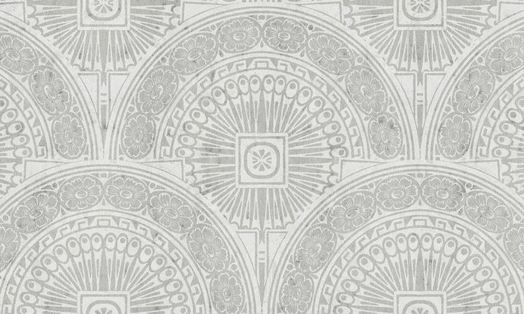 Forum wallpaper has a large classic graphical pattern of semi-circles, decorated with abstract figures. Available in rich metallic colors with a contemporary twist. The tastemaker for your interior! The wallpaper has a metallic shine and is therefore made of metal foil.