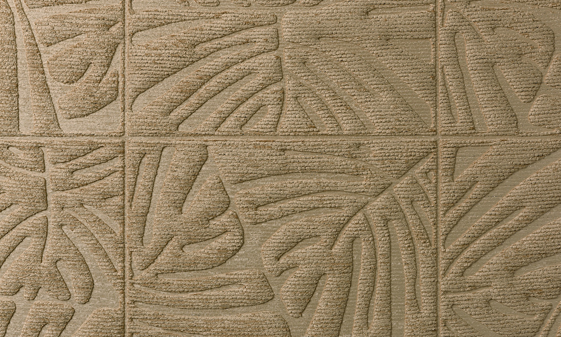 Monstera wallpaper has an abstract palm leaf pattern that is staggered and has a tantalizing 3D effect. Botanical motifs and jungle scenes come together in this collection. Stain and water repellent, positive acoustic effect, and fire retardant.