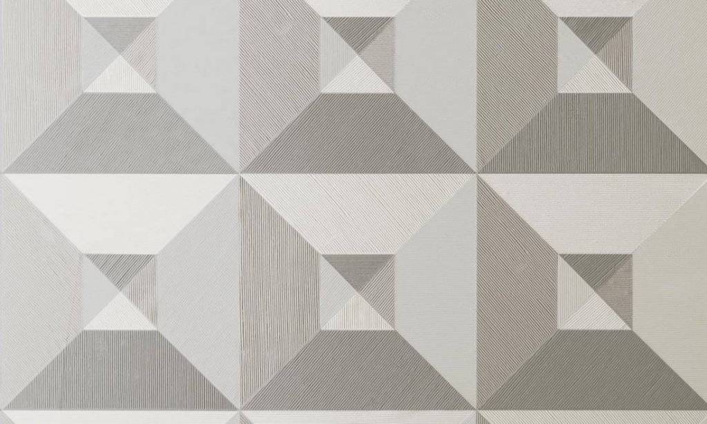 Pyramid Wallpaper ARTE has a square geometric interplay of lines built up from relief. Pyramid plays with sleek geometric pyramid shapes that create an illusion of depth through different colors. The wallpaper is reminiscent of ancient Egypt and a work of art by Escher. The wallpaper is also available in a single-coloured version, the uni called Squared, also from the Focus wallpaper collection from ARTE.