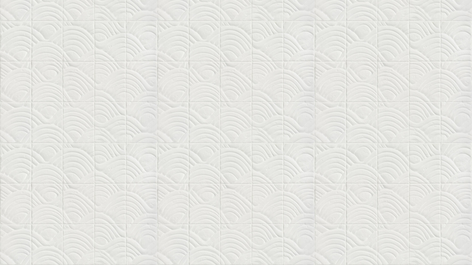 Combining various light panels in tile form results in a drawing that looks both geometric and earthy. This design evokes associations with decorative pottery or waves in the sand, thanks to the pronounced relief of the engravings.