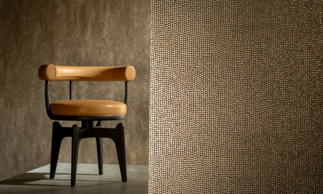 Tessera wallpaper is inspired by the small squares of stone, ceramic, terracotta or glass used to create mosaic floors or decorative jewelry. The shimmering look of the metallic shades of silver, gold, bronze and pink certainly gives this pattern a glamorous feel. This wallpaper is fire retardant.