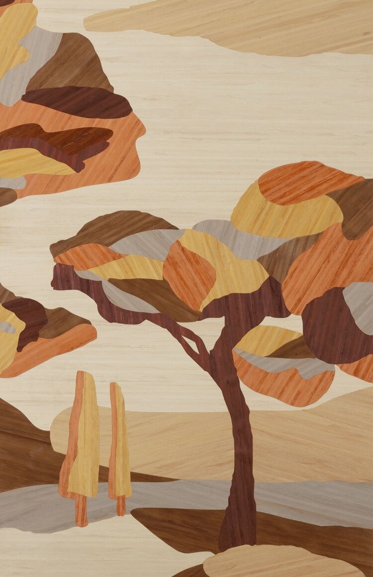 This beautiful panorama from Arte's 'Emblème' collection is a masterpiece, carefully composed from the finest wood veneers and inlaid by hand into a unique pattern. By precisely placing each piece of colored veneer in different directions and shapes, an impressive scene of sycamore trees is created. The wood, as a living natural product, brings its own story to life with each grain and hue, making this panorama a truly unique showpiece for your interior.
