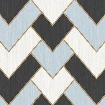 Vanity design takes a nod to the Art Deco period with a modern herringbone pattern inspired by the Gatsby style, with a luscious fine line in metallic gold making it that much more modern. non-woven wallpaper with a realistic textile effect.
