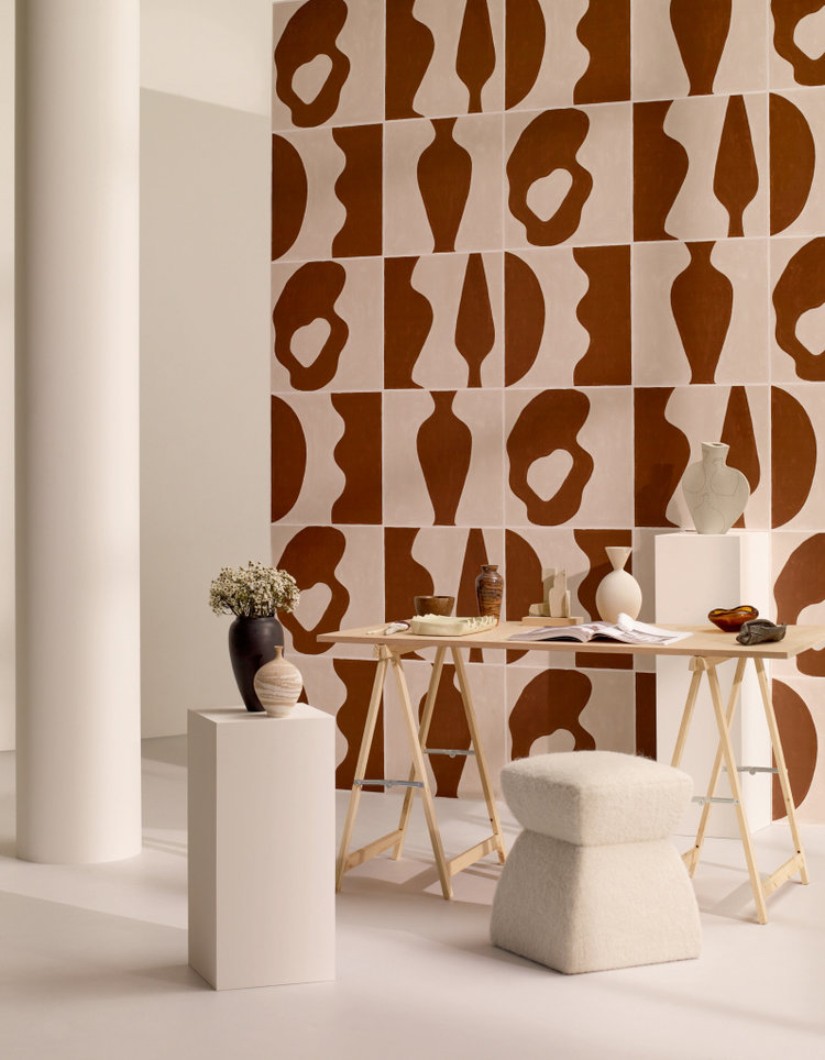 Meet one of the founding myths of Garance Vallee, trompe-l'oeil, finding its way to a different reality with wallpaper. Emulating a wall of earthenware tiles, paint provides not only striking depth but also an artisanal dimension most favourable to emotions. This memory from the Middle-East extends a generous invitation to experience contemplation.