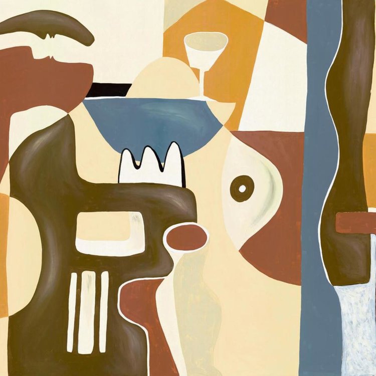 We are looking at a true canvas, our eyes seem to tell us. No matter how close one gets, the brushstrokes feel intact and the paint is still present. Somehow the wallpaper disappears to make room for a mural fresco, laden with references. You might encounter Le Corbusier, Perriand, Arp, Prouve, and other pioneers of organic, surrealist or abstract takes on modernism.