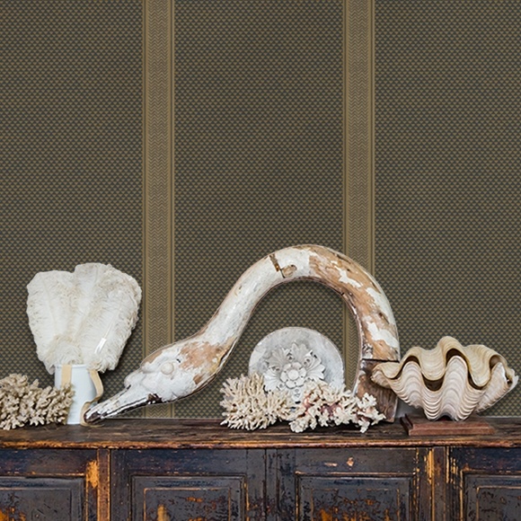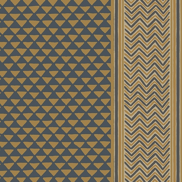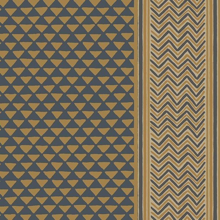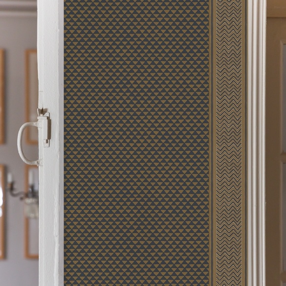 Puck Stripe is a great wallpaper that combines stripes and geometry. Its pattern, composed of small triangles, is punctuated by a stripe worked with metallic zigzags, which recalls ethnic patterns. Shauna Dennison was inspired here by “Midsummer Night's Dream” by William Shakespeare, and in particular by the tunic of Oberon, the king of the fairies. In its orange and black color, this wallpaper has a lot of personality. Puck Stripe is available in 5 other colors.