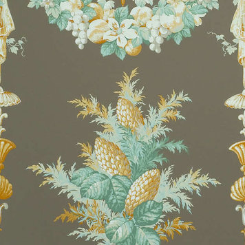 Conventional composition, garlands and fruits. Wallpaper printed by hand in a frame. untrimmed.