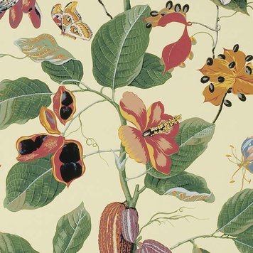 Fantastic stem from which exotic fruits and flowers sprout. Wallpaper printed by hand in a frame. untrimmed.