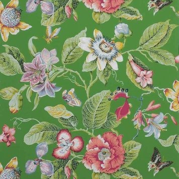 Luxurious floral composition in which passion flowers, peonies and lilies bloom. Wallpaper printed by hand in a frame. Not trimmed.