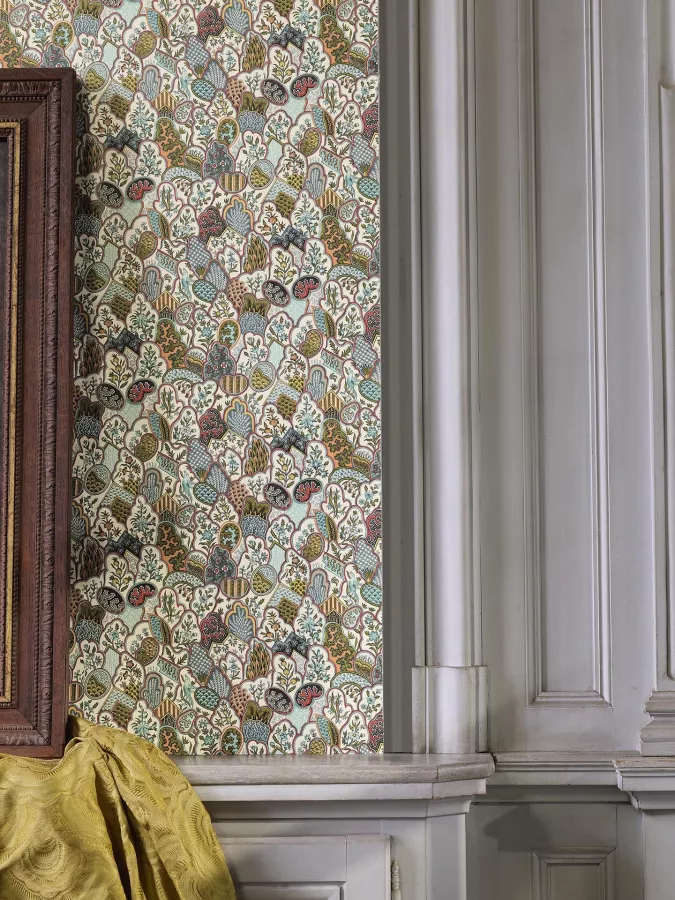 Les Rivieres de l'Indus is a wallpaper that is inspired by the flowers and leaves from the iconic Tree of Life. This wallcovering from Braquenié, from the Pierre Frey Braquenié Collection Anniversaire 1823, shows the flowers and leaves in an intricate pattern, that is reminiscent of Chinese embroidery. A timeless wallpaper that is perfect for a luxe, chic and exclusive interior.