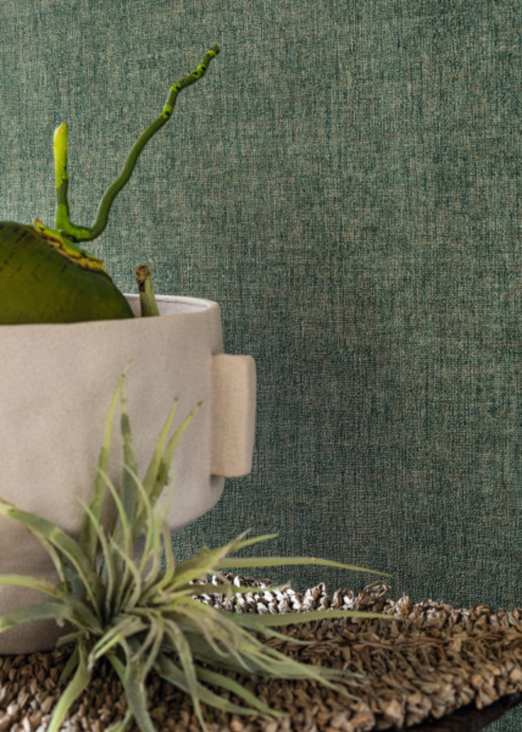 Diola wallpaper has the rough appearance of a gauze cloth and the appearance of a textile worn by time. Due to the intaglio printing technique, it is available in twenty-four extremely fine colours. Due to the heavy 440g vinyl, the texture is rich. This wallpaper is named after a West African people.
