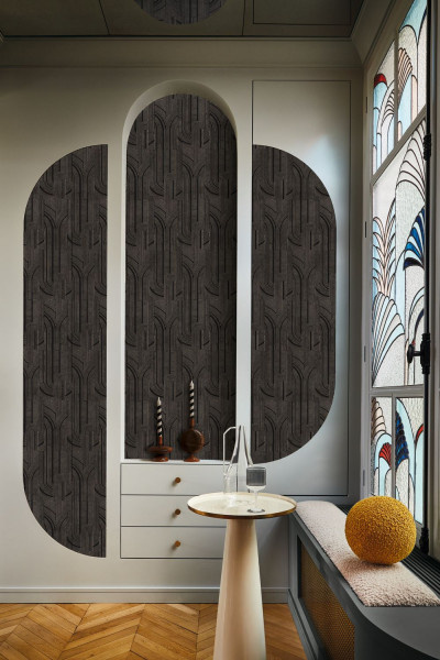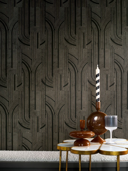 This collection was designed by architect Robert Mallet-Stevens. Faubourg Des Lumières is inspired by the patterns of this period with an abundance of textures and the metallic sheen of the inks. In a range of deep tones, it features elegant geometric compositions influenced by the architecture and stained glass of the 1930s