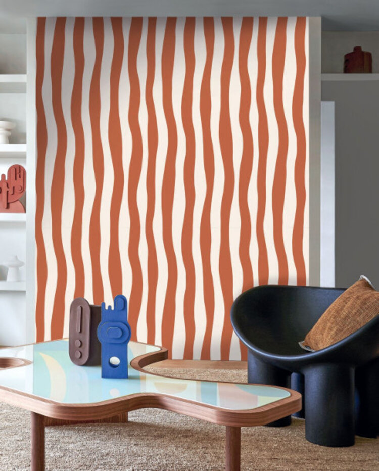 Sundae is a wallpaper with a succession of wavy stripes. The wallcovering by Casamance from the L'Île Aux Oiseaux collection seems to follow a path with its wavy stripes, a winding coastline. A beautiful wallpaper that is perfect for a beach vibe and summery interior.