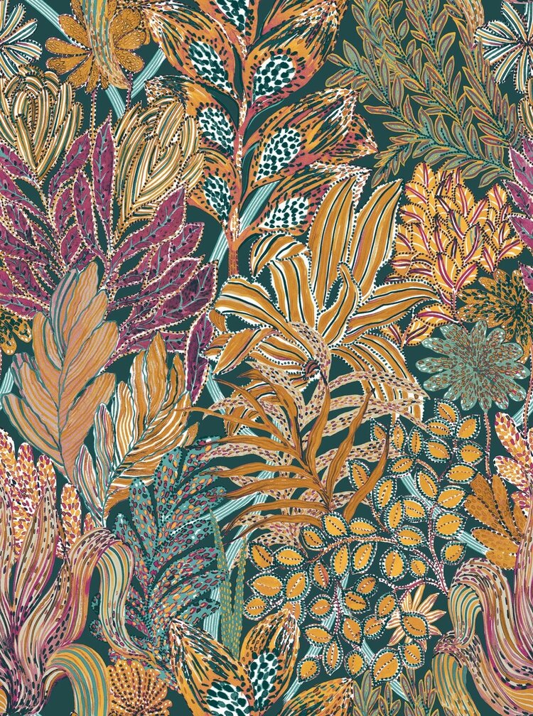 Casamance wallpaper Borrommee Pétrole/multico - A74320936