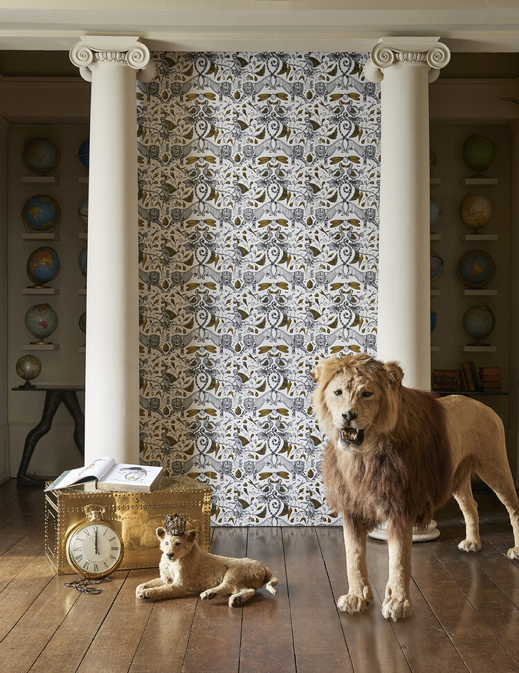 Clarke & Clarke is known for the classic look with its sophisticated style in every print. The 'Animalia Wonders' collection is an exciting collaboration with artist Emma J. Shipley. The designs include tropical parrots, swinging lemurs, ferocious tigers and hand-drawn giraffes. This wallpaper is perfect for an exotic and magical interior.