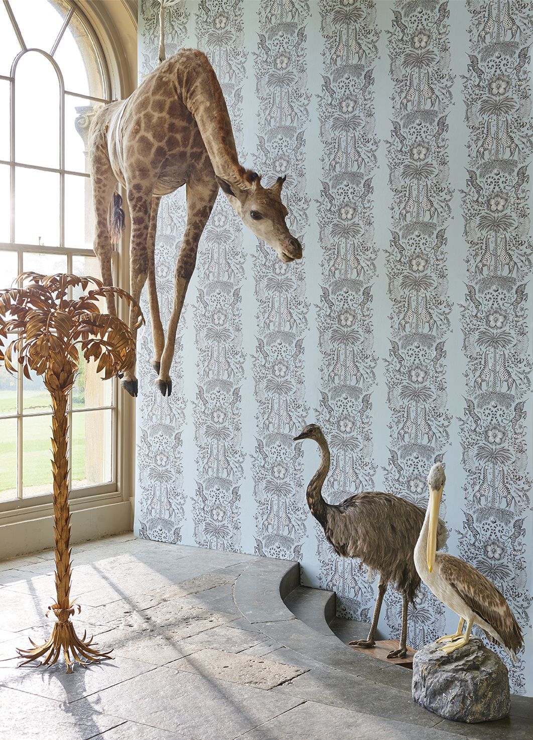 Clarke & Clarke is known for the classic look with its sophisticated style in every print. The 'Animalia Wonders' collection is an exciting collaboration with artist Emma J. Shipley. The designs include tropical parrots, swinging lemurs, ferocious tigers and hand-drawn giraffes. This wallpaper is perfect for an exotic and magical interior.