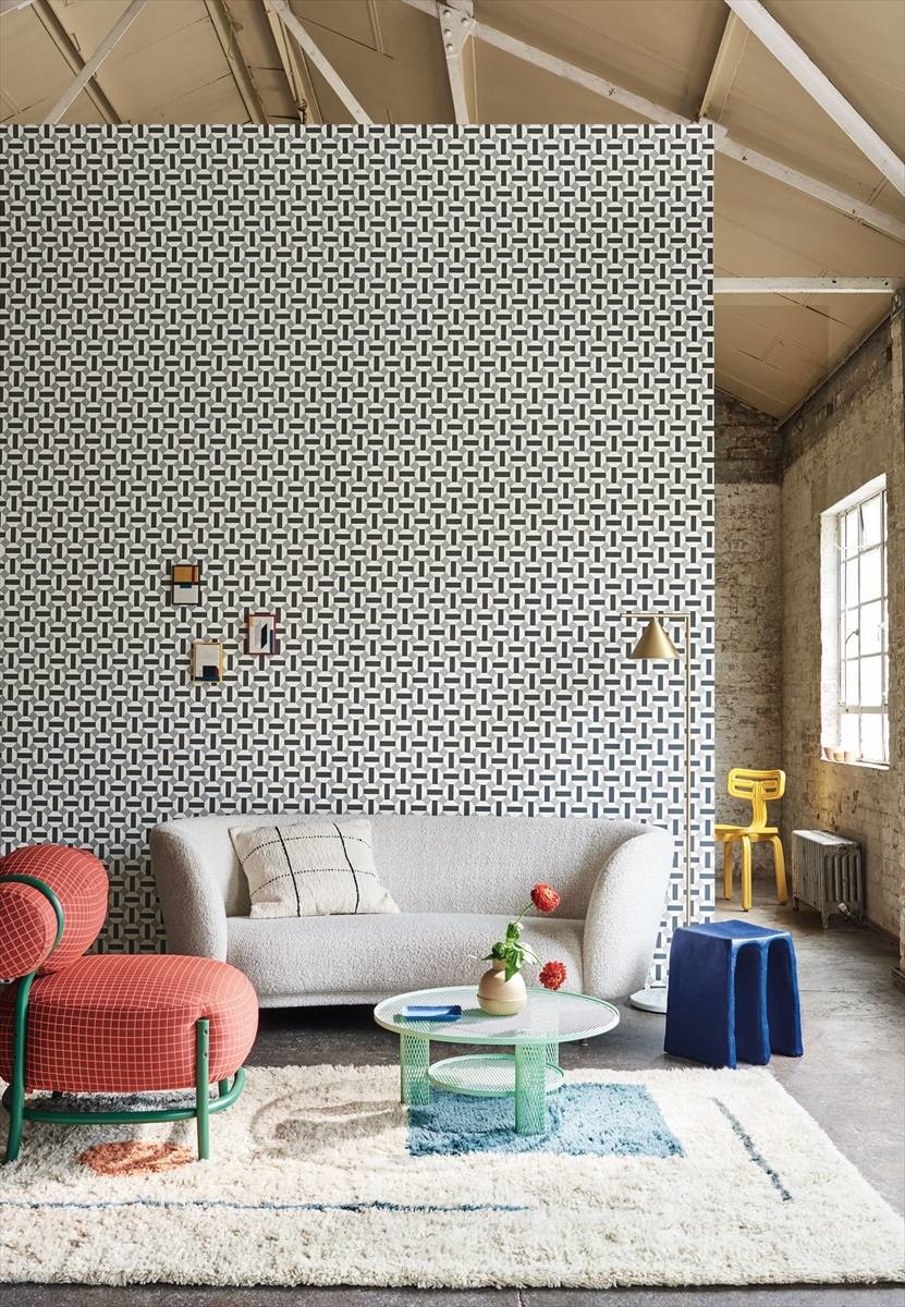 Alicatado, meaning a geometric mosaic of coloured glazed tiles, is the design studio's interpretation of Seville's famous azulejos. Its simple two-toned print creates a striking graphic backdrop and has been designed and coloured in order to complement other designs within the collection.