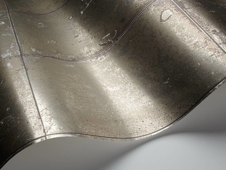 A wallpaper design incorporating reclaimed tiles creating the appearance of a vintage foxed mirror. Unusual printing techniques were incorporated with the use of foil and transparent ink creating the reflective effect. Colour-ways include Silver, Grey and Golden Bronze. Colours shown on-screen may vary from the original wallpaper, we therefore recommend ordering a sample to view the true colours. We recommend that you use Cole & Son Tub Paste.