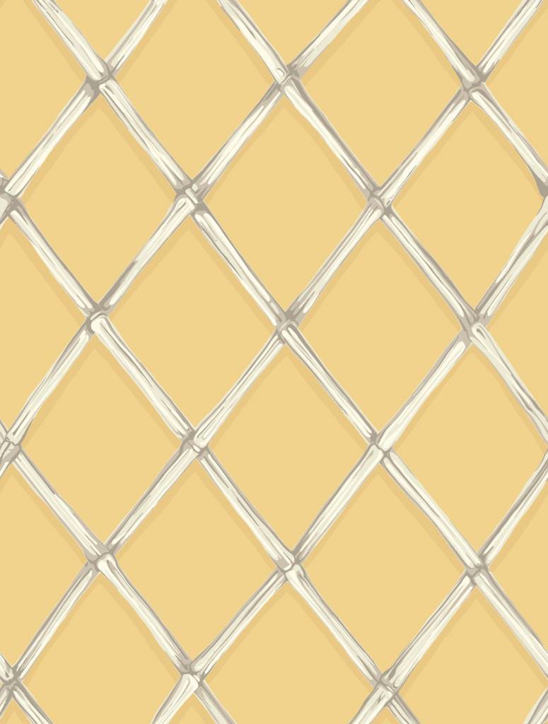 Featuring the classic bamboo trellis, this elegant latticed wallpaper is a tribute to the eighteenth century landscaped garden of the Chateau de Bagatelle, itself designed in an Anglo-Chinese style. Shown in 5 soft colour-ways of olive, duck egg, ivory, stone and yellow. Lifestyle image shows olive 99/5026.