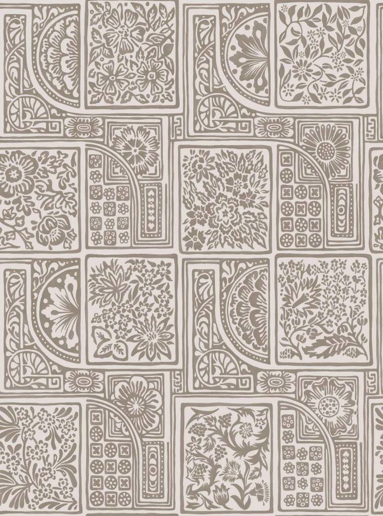 Bellini is a re-working of a Cole & Son surface print wallpaper design from the 1950s. Featuring a pretty water-coloured arrangement of tiles containing loosely sketched florals and geometrics, Bellini, named after Vincenzo Bellini the famous Italian composer, is presented in four simple colourings of charcoal and white, china blue on white, white on grey and a subtle gilver on stone.