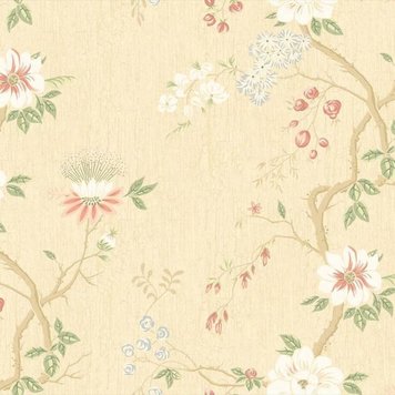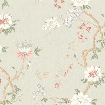 Camellia is another of Cole & Son's archival prints, with reworked floral elements to make each study reflective of the Camellia japonica, whilst retaining the design's original crackled glaze ground. Its glossy, leather-like leaves and showy flower heads are radiant in their alluring form in classic tones of Coral & Sage on Buttercup, Coral & Duck Egg on Eau du Nil, Lemon & Sage on Print Room Blue, White & Red on Charcoal, and the decadent Crimson on Metallic Gold.