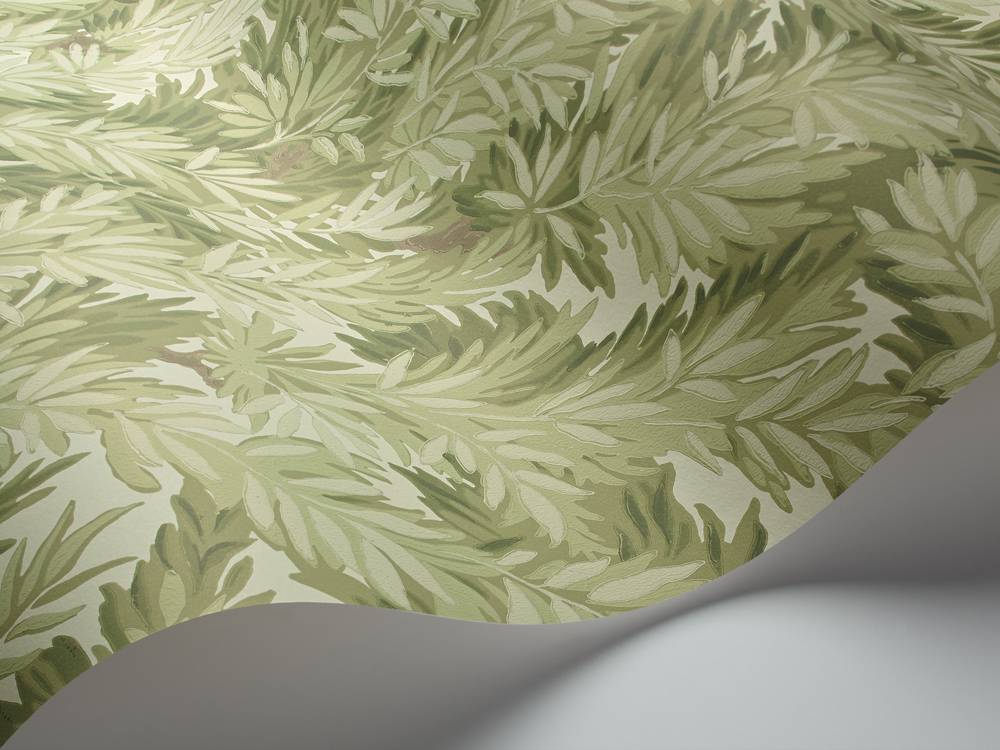 Originally a block print, Florencecourt wallpaper takes its name from the Florencecourt Yew, widely considered to be one of the original yew trees within the British Isles. Featuring dense foliage in shades of green, teal, grey and olive, this wallpaper has been given a contemporary feel through its combination of surface and flexographic print techniques.