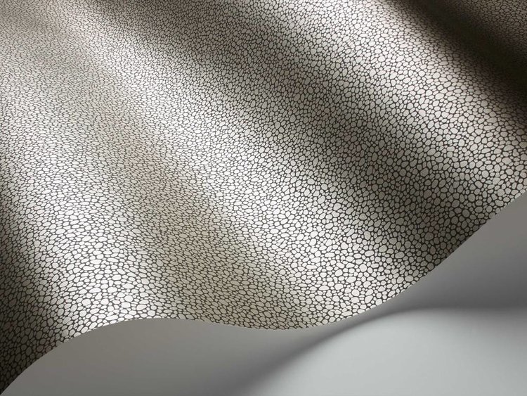 A different interpretation of Cole & Son’s Pebble design, Goldstone features a mass of shimmering marbled flecks of gold and silver on grounds of pale green, ivory, jet black and ebony. Designed to subtly blend into a soft sheen from a distance, Goldstone is the perfect ‘lustre’ wallpaper to add a hint of sparkle.