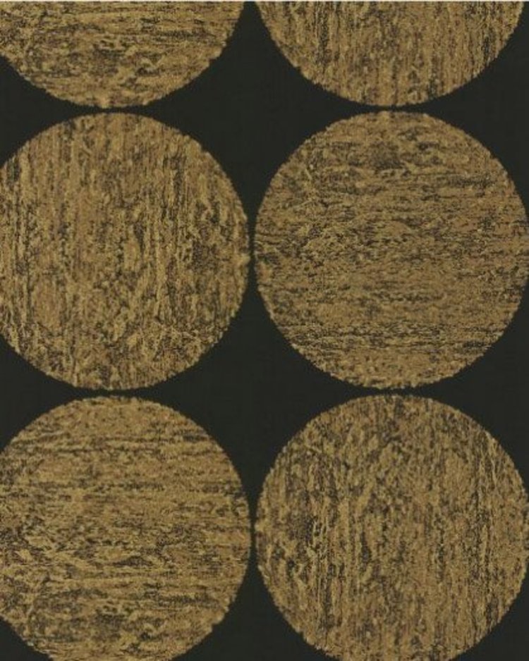 Vliesbehang uit de collectie New Contemporary II van Cole & Son. Patroon Luna (695119) met ronde vorm in kleur zwart met glans, bruin en goud.