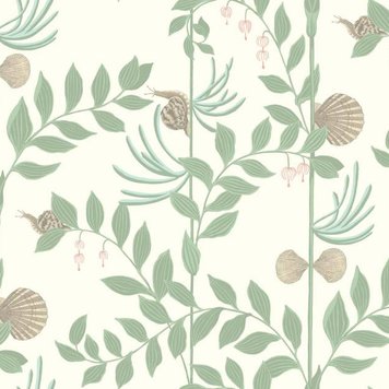 Designed as a companion to Nautilus, Secret Garden presents an amusing take on the traditional foliage pattern. Sea shells mingle with garden snails to reveal a verdant underwater jungle. At 52cm wide this design is offered in two colourings of emerald green and misty sage green.