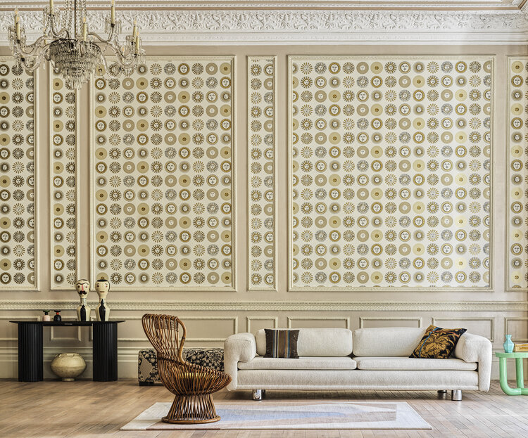 Cole & Son stands for classic English wallpaper with a contemporary twist. The special prints and rich colors give each room a unique look. This wallcovering by Cole & Son, from the Fornasetti Senza Tempo II collection, brings together Italian humor and British artistry. The design house of Cole & Son and Fornasetti, the iconic Milanese atelier, creates a unique magic, timeless aesthetic and endless creativity.