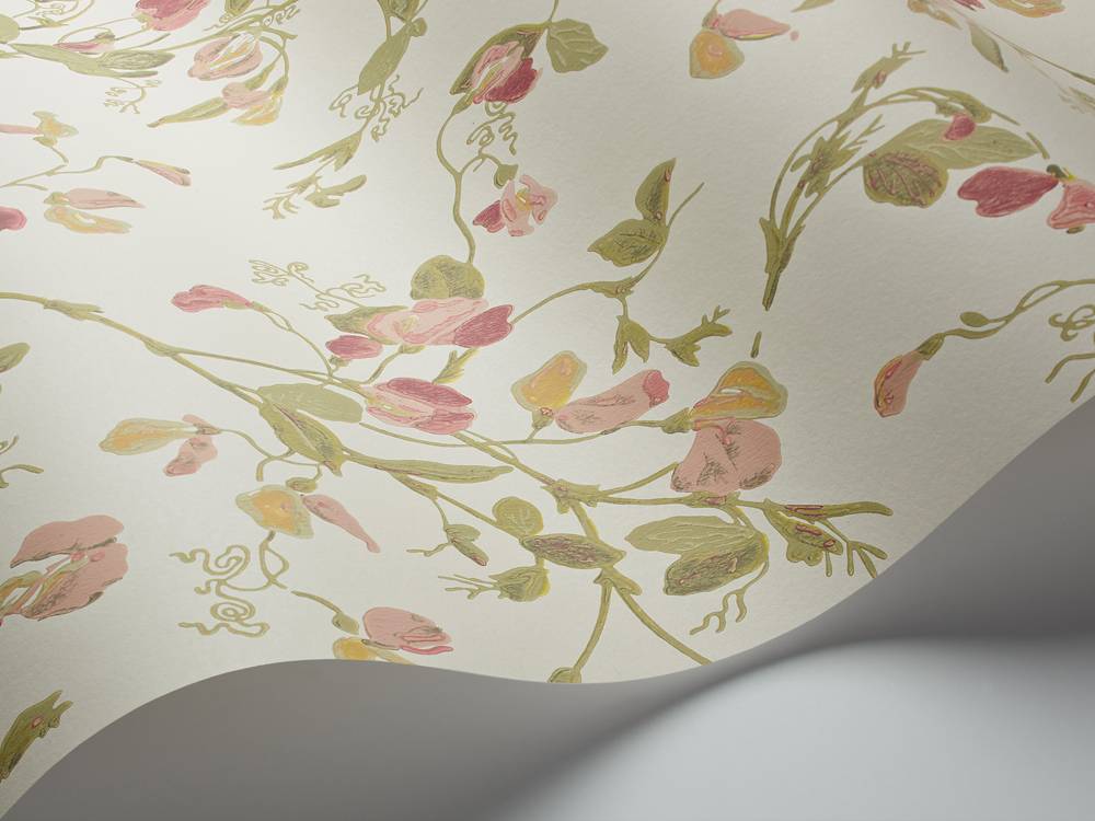A Cole & Son favourite, the Sweet Pea wallpaper design has been re-worked in a series of modern colourings. Produced in the classic surface printed tradition, Sweet Pea is presented in a range of soft pretty pinks, yellows, violets, greys and blues, on chalky grounds of delicate neutrals and a subtle yellow.