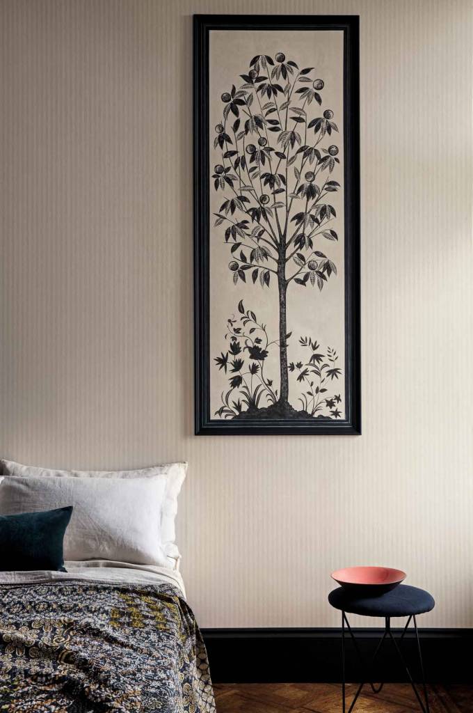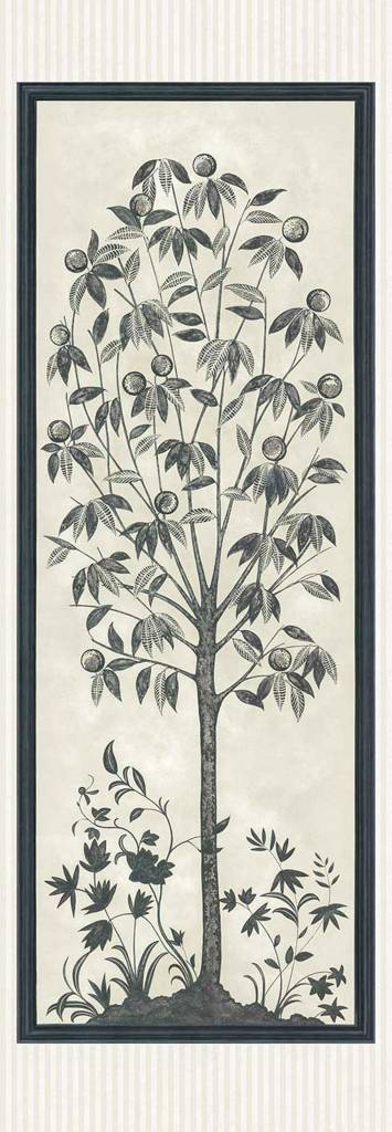 The elegant Trees of Eden panels are an ode to the eponymous, mythological garden. Their design takes its inspiration from archive chintz patterns, where the fusion of ethnic motifs and traditional British heritage design created opulent and highly-prized textiles. Each tree, whilst different in design, depicts boughs luxuriant in foliage, forbidden fruits, and the classic Cole and Son wisteria flowers. Painted to scale, with a distressed, batik-like effect this highly decorative series makes an instant design statement, whether hung side by side for a dramatic effect or individually for a striking centrepiece.