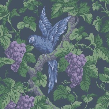Cole and Son Woodvale Orchard wallpaper is beautifully exotic and lush and is a design from the Cole & Son archive. Parrots can be found on this wallpaper, sitting between a flowering canopy of leaves and sun-ripened grapes. The design is printed on the surface to ensure that traditional print marking textures are preserved in this modern reproduction.