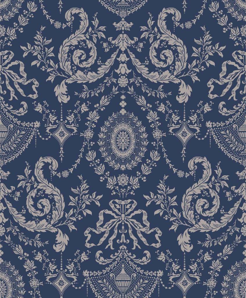 Taken from an 18th century silk design, this delicate small-scale damask wallpaper has been produced in three colour-ways, warm silver on pale duck egg, white on champagne lustre, and warm silver on muted navy. Colours shown on-screen may vary from the original wallpaper, we therefore recommend ordering a sample to view the true colours. We recommend that you use Cole & Son Tub Paste.