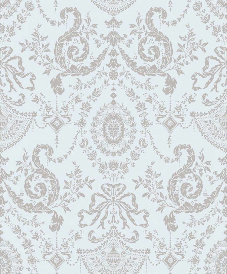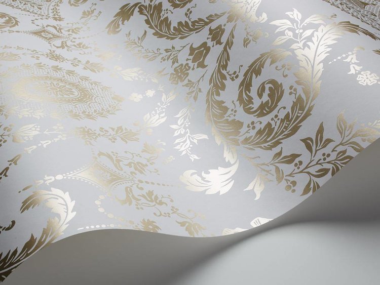 Taken from an 18th century silk design, this delicate small-scale damask wallpaper has been produced in three colour-ways, warm silver on pale duck egg, white on champagne lustre, and warm silver on muted navy. Colours shown on-screen may vary from the original wallpaper, we therefore recommend ordering a sample to view the true colours. We recommend that you use Cole & Son Tub Paste.