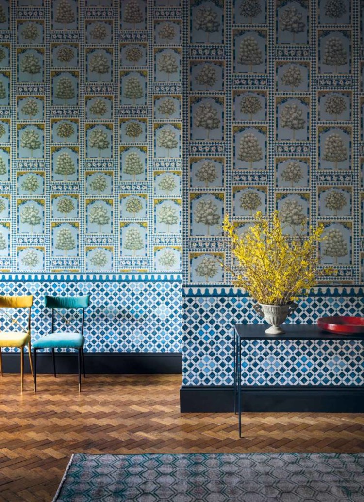 As with traditional tile motifs, the Zellige Border provides a decorative trim to many of the Martyn Lawrence Bullard designs, including Zellige and Sultan’s Palace.