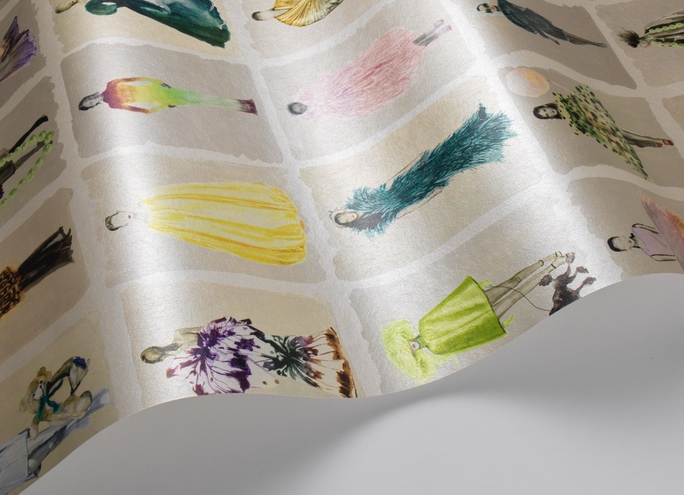 To mark Harrods' 175th anniversary, the design house Cole & Son, in collaboration with Harrods Interior Design, has created Couture Carousel – a collection of wallcoverings and cushions that pays tribute to Harrods' rich heritage and the world of haute couture. This wallpaper is perfectly suited to stylish interiors such as a walk-in wardrobe, a luxurious bedroom, or an elegant reception room.