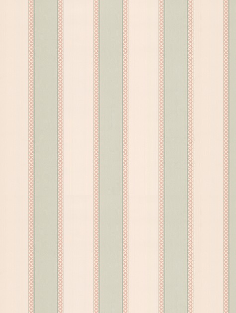 A formal shell-edged stripe rejuvenated with the addition of new color ways. Shown here in Aqua and Pink, it is also available in Old Blue. There is no pattern repeat and it can be linked freely.
