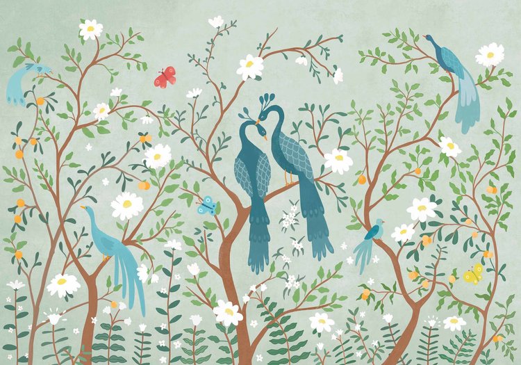 The Coordonné Edo Kids Mint is a cartoon version of the famous Edo wallpaper from Coordonné. This graphic chinoiserie wallpaper has a botanical print with beautiful flowers and branches where graceful birds find their way. Due to the beautiful full colors and the graceful design, this panel radiates style and joy. Perfect to add a chic and cheerful edge to the nursery.