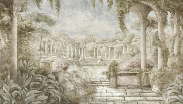 The Pompei wallpaper is perfect for spaces such as living rooms, bedrooms, entrances, studies, and hospitality settings, where atmosphere, elegance, and a sense of historical character take centre stage.