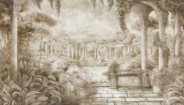 The Pompei wallpaper is perfect for spaces such as living rooms, bedrooms, entrances, studies, and hospitality settings, where atmosphere, elegance, and a sense of historical character take centre stage.