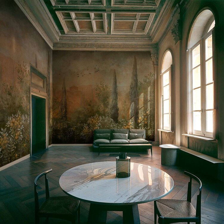 The Random Metallics II collection by Coordonné moves between the figurative and the abstract, playing with suggestion and clarity. Geometric lines coexist with fragmented, idyllic landscapes and suggestive organic textures that transform the wall into a stunning canvas. This wallpaper is ideal for luxurious, modern interiors seeking an artistic and dynamic statement with a refined metallic finish.
