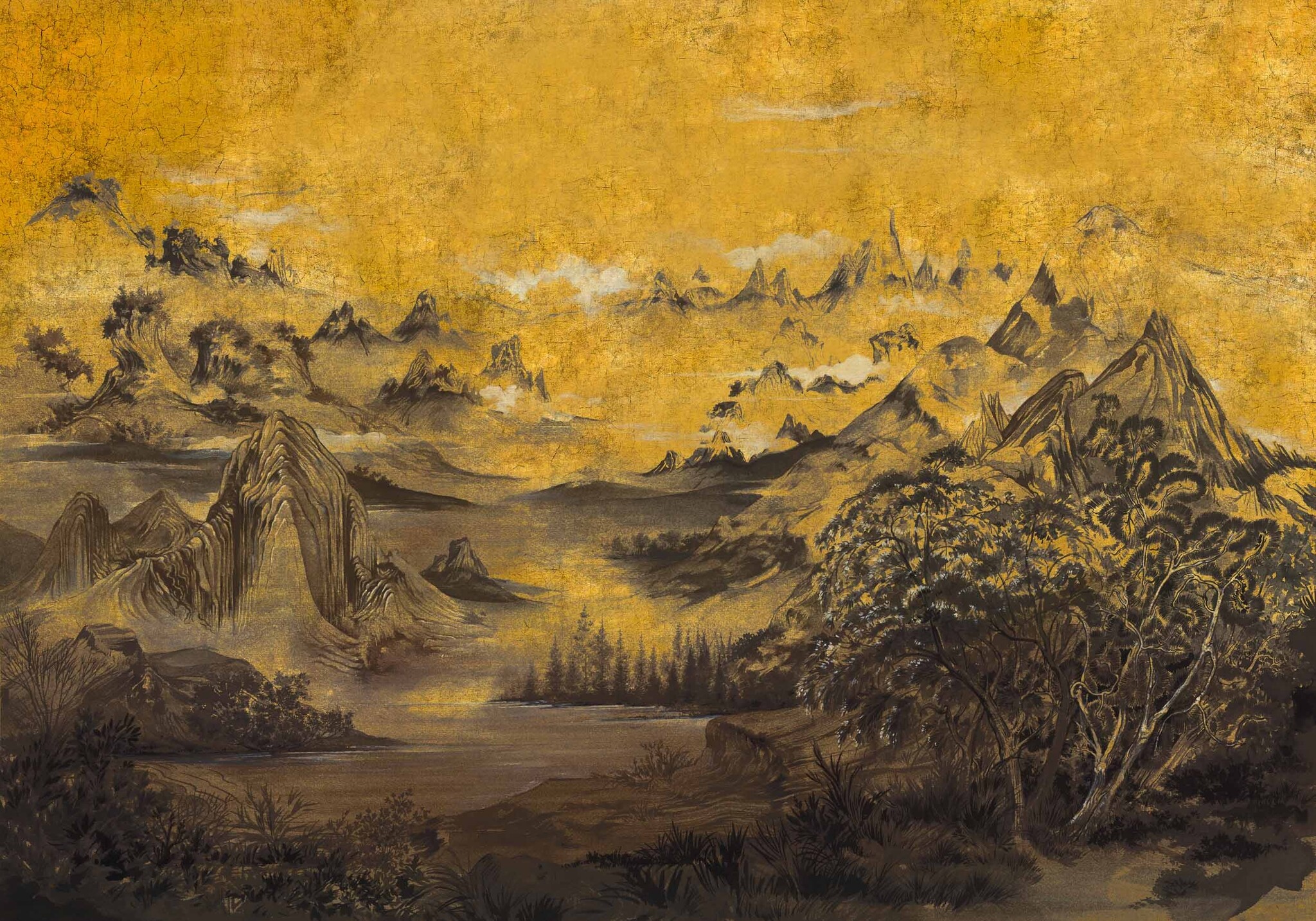 Coordonné's “Random Chinoiseries II” collection is inspired by famous frescoes with oriental influences of the extravagant landscapes that once adorned the walls of ancient Japanese and Chinese dynasties. An abundance of ornaments immerses the viewer in a utopian setting, where mountain landscapes, whimsical flowers, birds and unique creatures evoke wonder.
