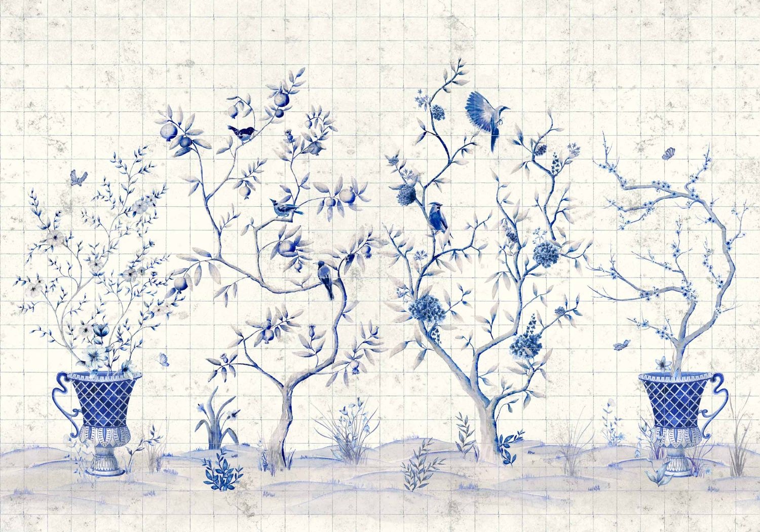 Coordonné's “Random Chinoiseries II” collection is inspired by famous frescoes with oriental influences of the extravagant landscapes that once adorned the walls of ancient Japanese and Chinese dynasties. An abundance of ornaments immerses the viewer in a utopian setting, where mountain landscapes, whimsical flowers, birds and unique creatures evoke wonder.