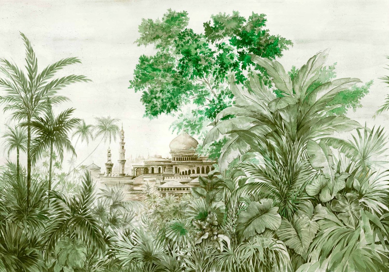 Coordonné's “Random Chinoiseries II” collection is inspired by famous frescoes with oriental influences of the extravagant landscapes that once adorned the walls of ancient Japanese and Chinese dynasties. An abundance of ornaments immerses the viewer in a utopian setting, where mountain landscapes, whimsical flowers, birds and unique creatures evoke wonder.